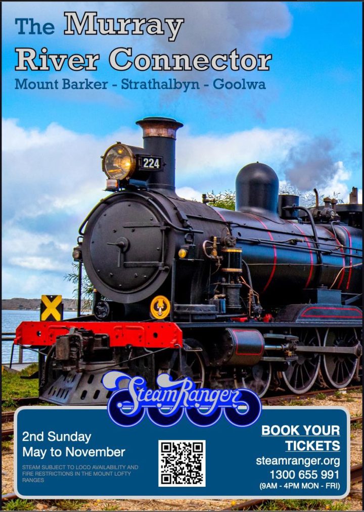 DetailsDeparts Strathalbyn 6.40pm Saturday October 29, arrives at Goolwa at 7.40pm. Passengers get 50 minutes in Goolwa Departs Goolwa at 8.30pm, arrives back at Strathalbyn at 9.30pm The train…