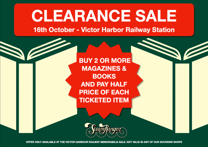 Today’s storms have resulted in minor flooding, landslides and signalling issues along the SteamRanger railway. To ensure of the safety of our passengers, the “Cockle Train” service for Sunday 13th…